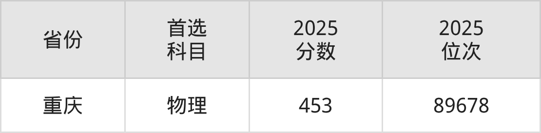 物理类最低分对应地区为重庆,录取位次为89678,超本科线28分。