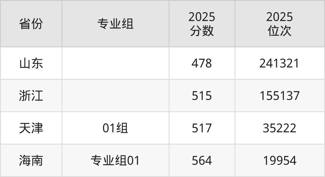 最低分对应地区为山东,录取位次为241321,超一段线72分;最高分对应地区为海南(专业组01),录取位次为19954,超本科线84分。