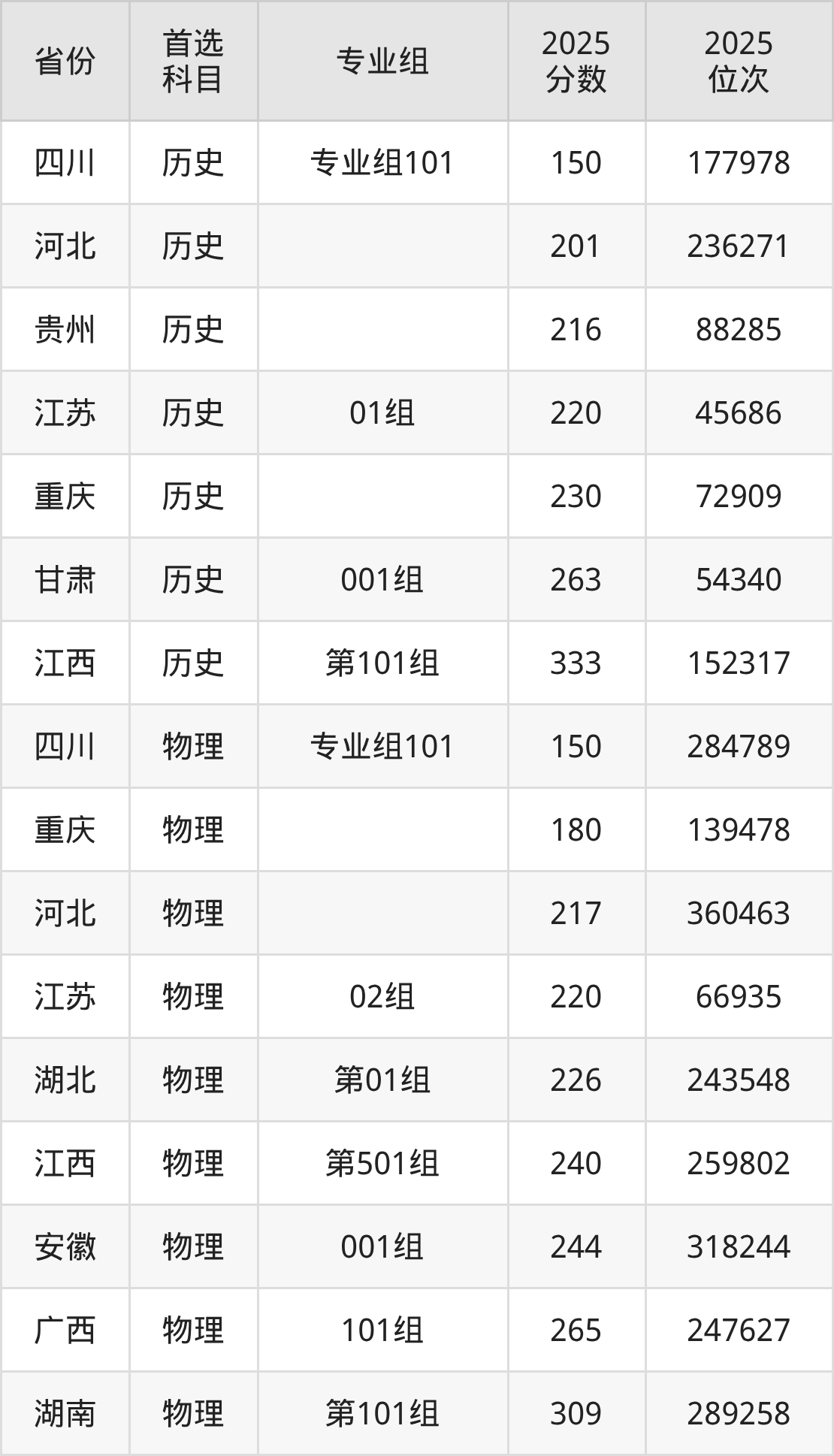 物理类:专业组101150分、284789名;