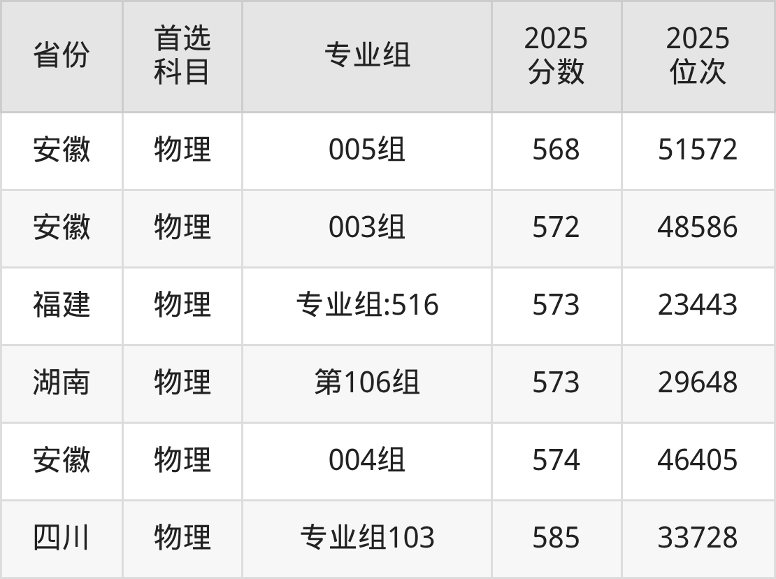 物理类最低分对应地区为宁夏(001专业组),录取位次为28847,超本科B6分;最高分对应地区为四川(专业组103),录取位次为33728,超本科B147分。