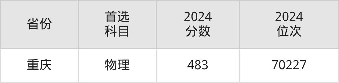 物理类最低分对应地区为广西(102组),录取位次为166074,超专科线165分;最高分对应地区为重庆,录取位次为70227,超专科线303分。