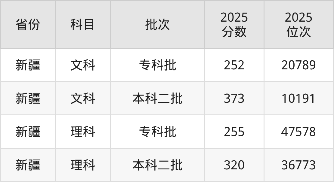 理科最低分对应地区为新疆,录取位次为47578,超专科线115分;最高分对应地区为新疆,录取位次为36773。