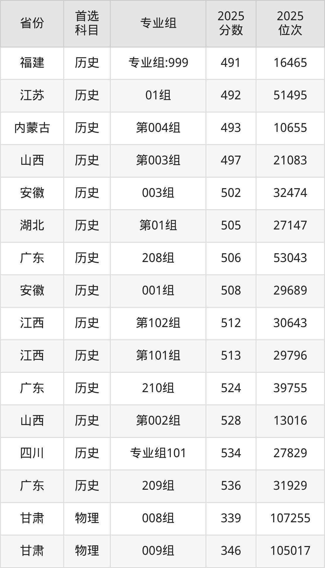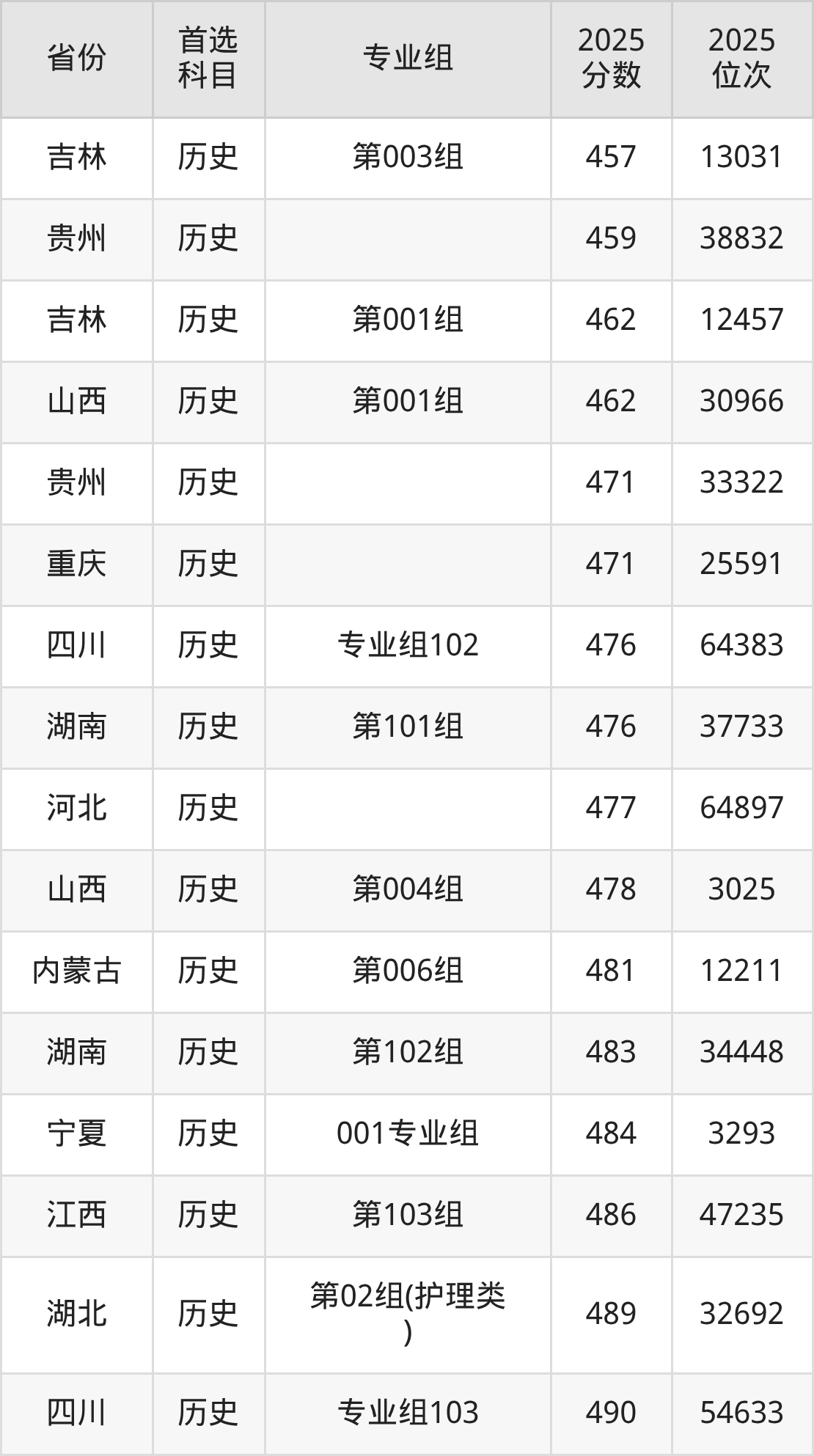 历史类最低分对应地区为黑龙江(第004组),录取位次为25218,超专科线233分;最高分对应地区为广东(209组),录取位次为31929,超本科线72分。