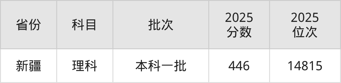 理科最低分对应地区为新疆,录取位次为14815,超一本线25分。
