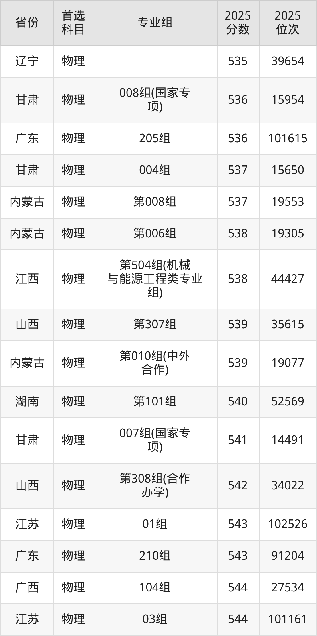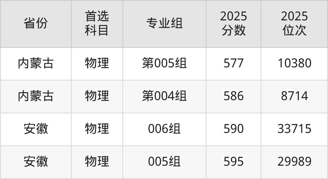 物理类最低分对应地区为广西(106组),录取位次为134468;最高分对应地区为安徽(005组),录取位次为29989,超本科线134分。