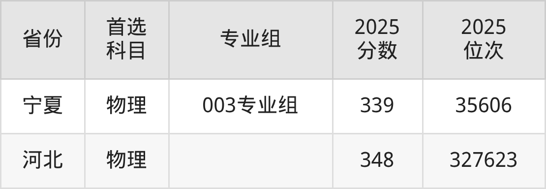 物理类最低分对应地区为甘肃(030组(建档立卡专项)),录取位次为120677;最高分对应地区为河北,录取位次为327623,超专科线148分。