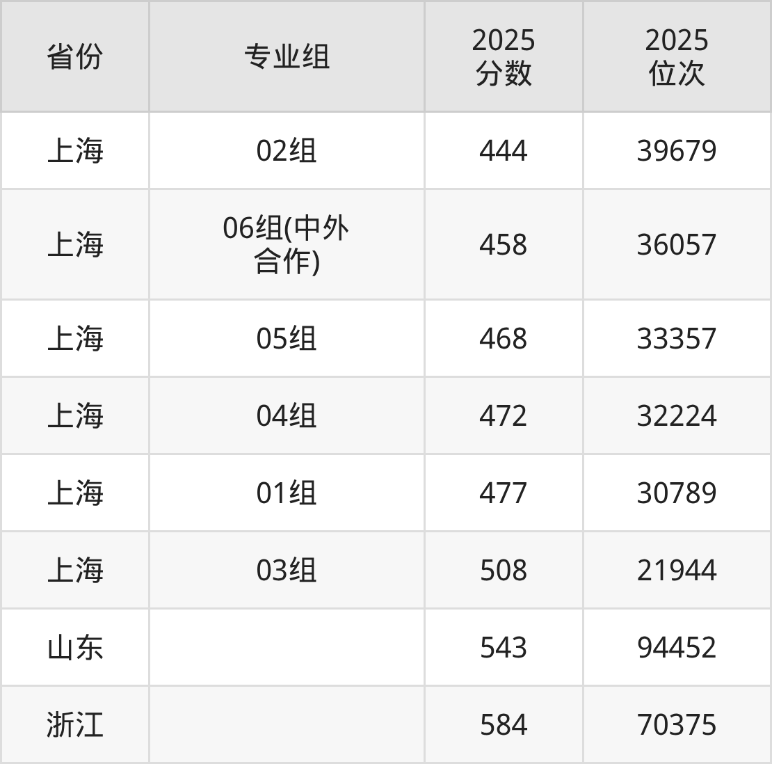 01组477分、30789名,02组444分、39679名,03组508分、21944名,04组472分、32224名,05组468分、33357名,06组(中外合作)458分、36057名;