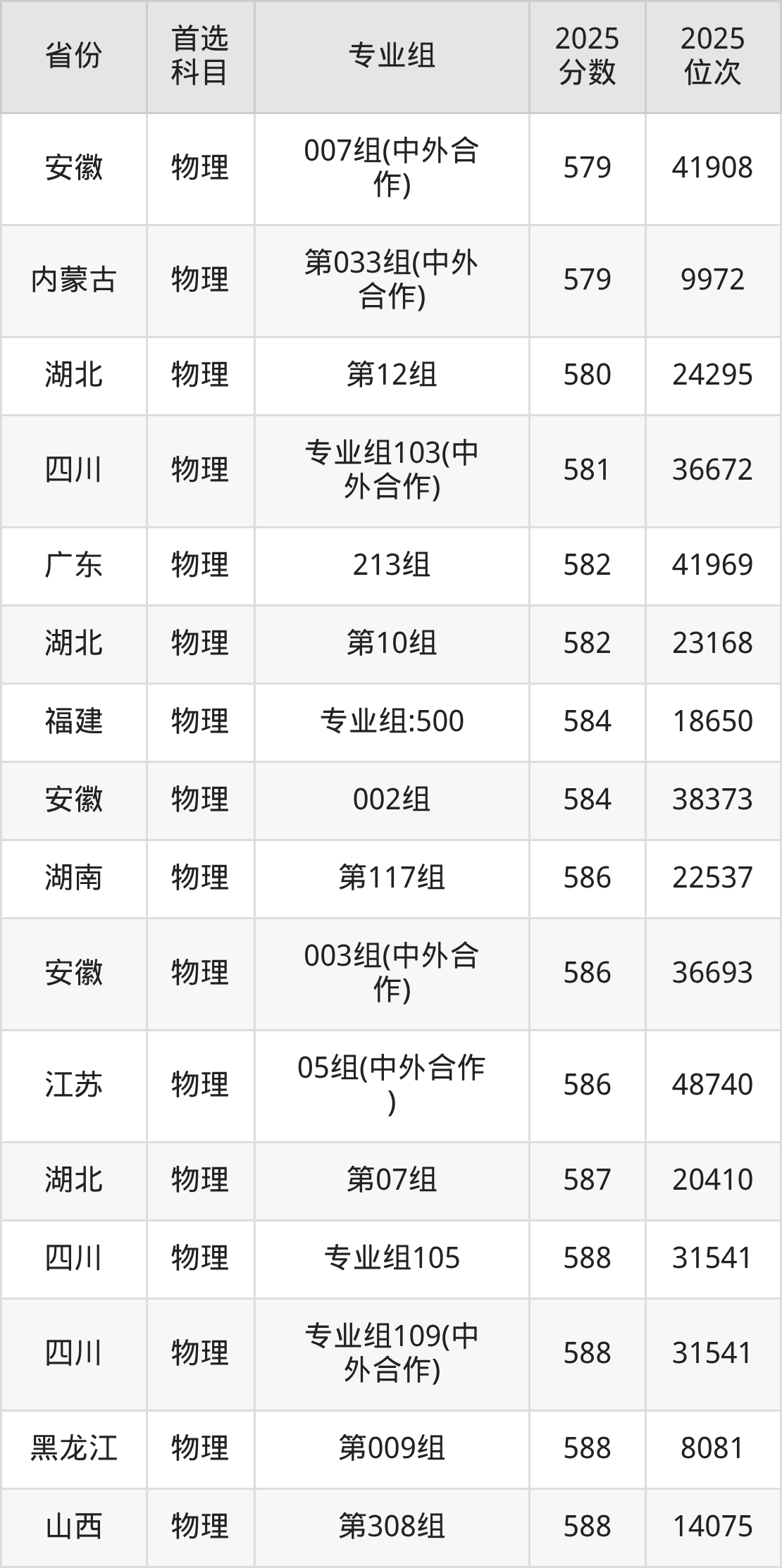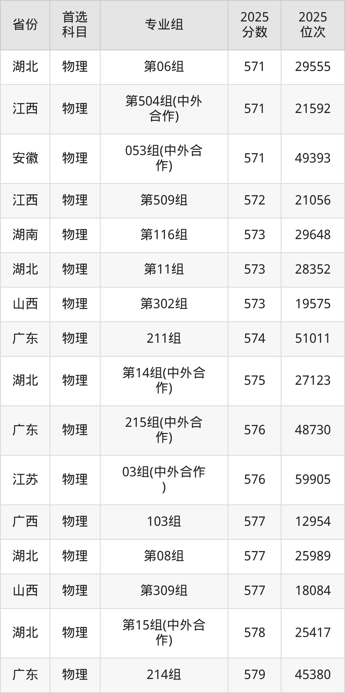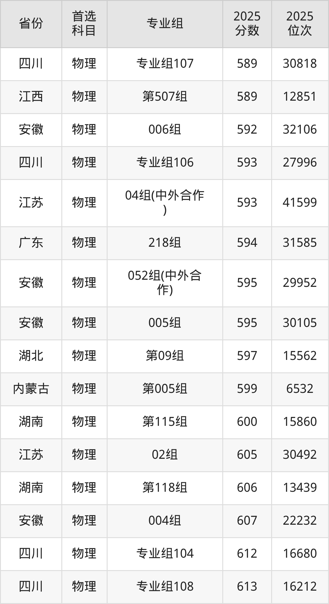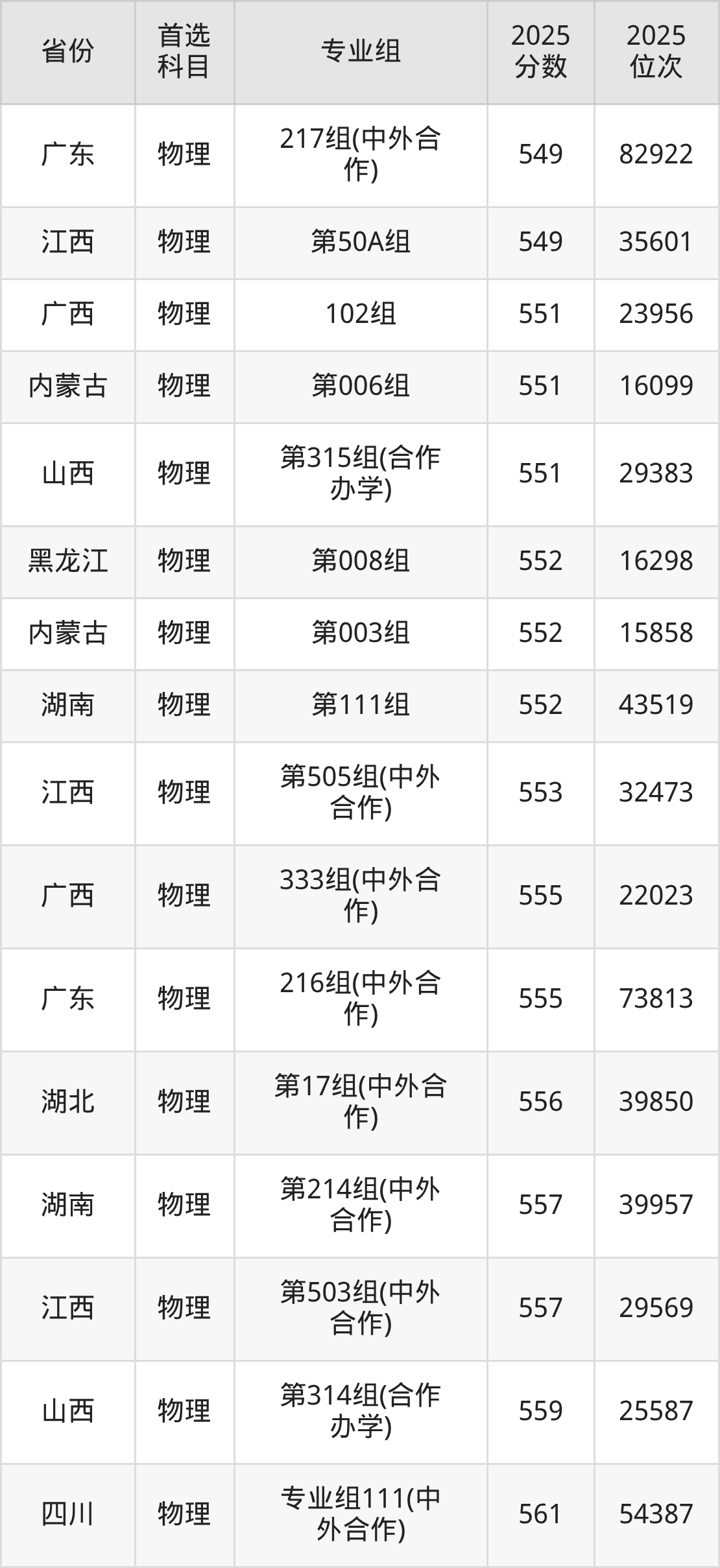物理类最低分对应地区为黑龙江(第006组),录取位次为66529,超本科线48分;最高分对应地区为四川(专业组108),录取位次为16212,超本科B175分。