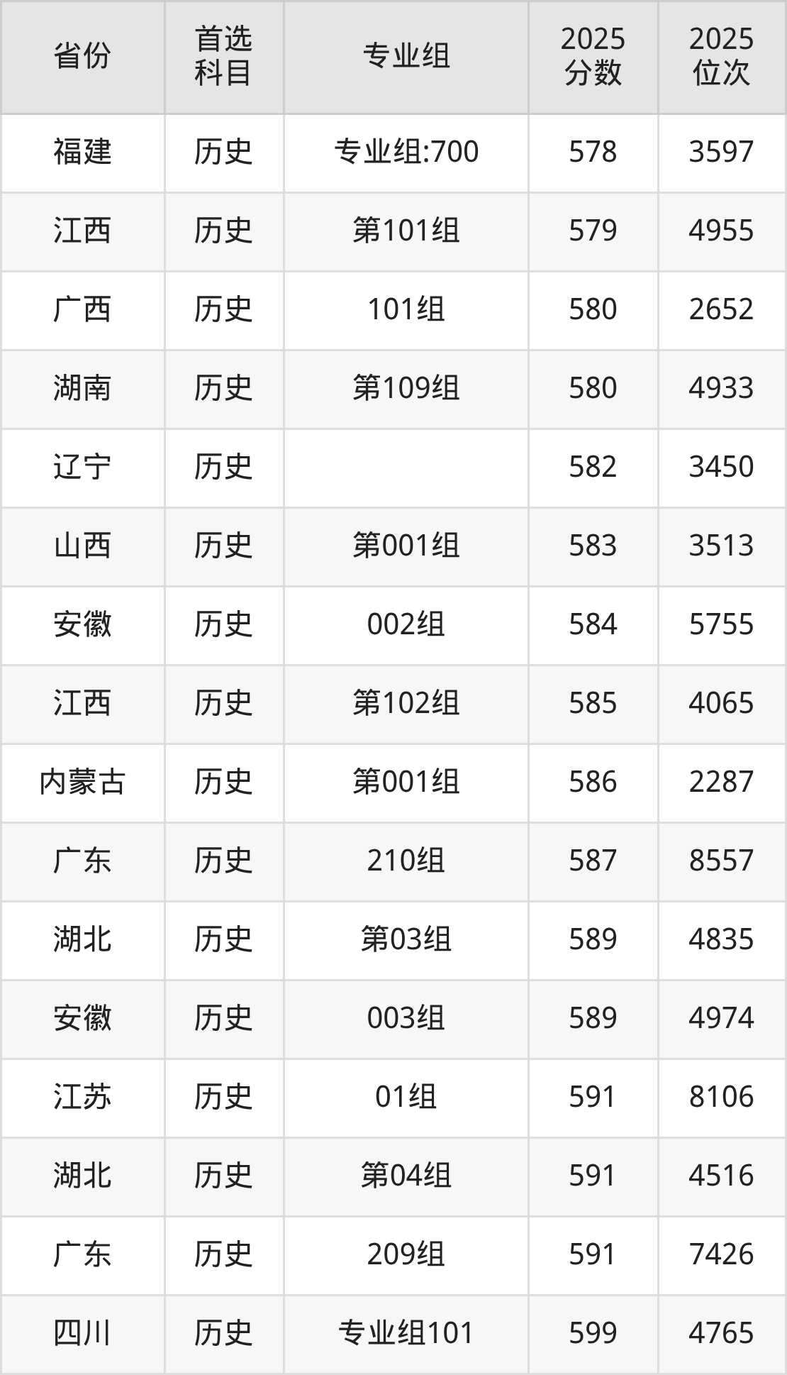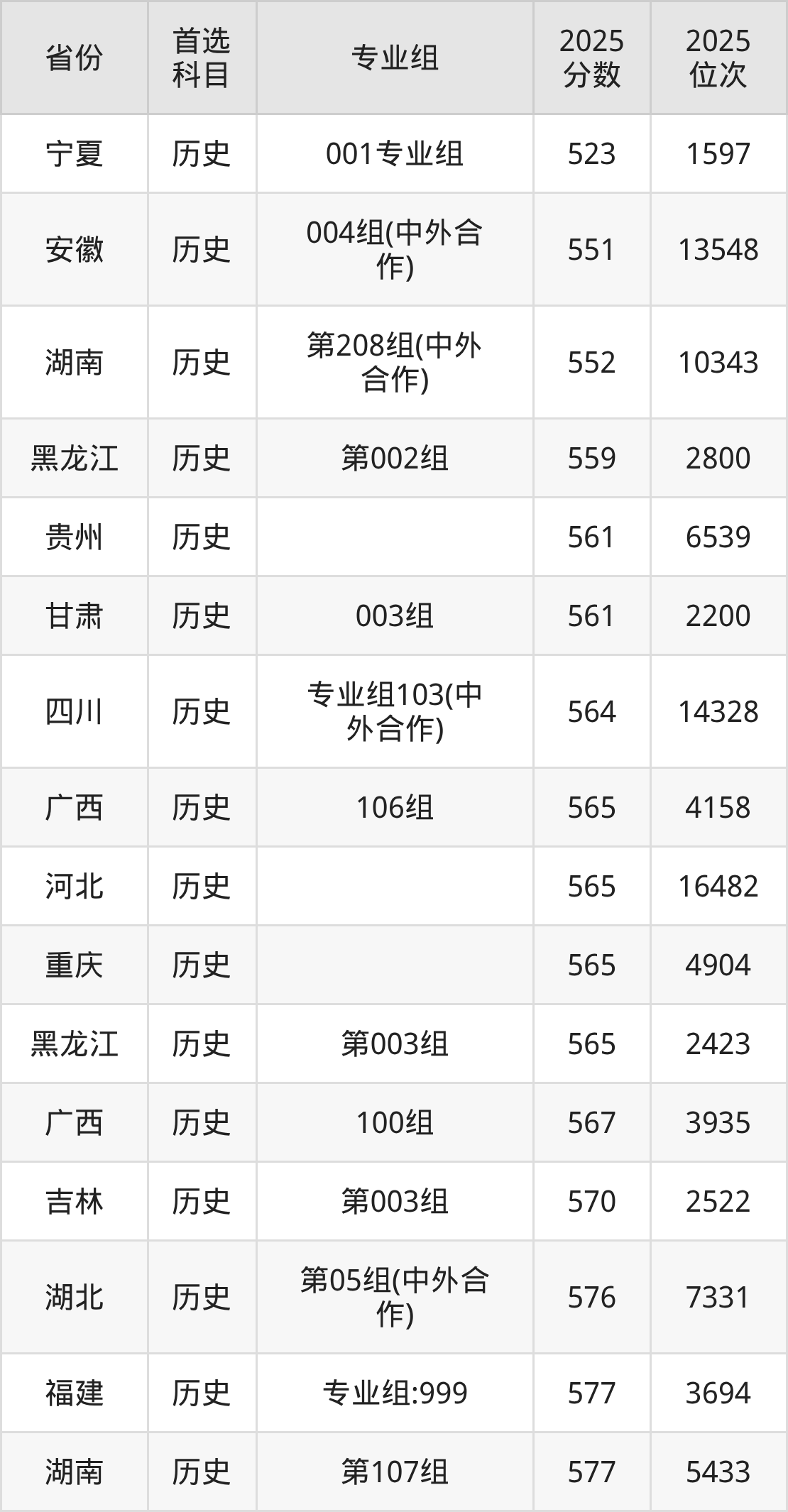 历史类:561分、6539名;