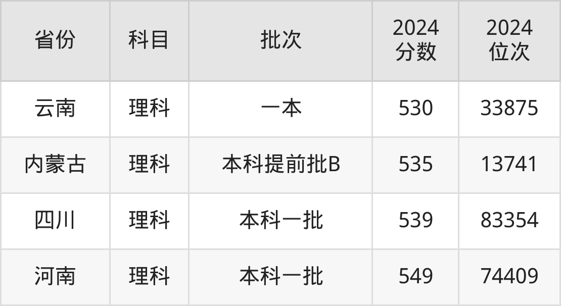 理科最低分对应地区为青海,录取位次为11640,超一本线40分;最高分对应地区为河南,录取位次为74409,超一本线38分。