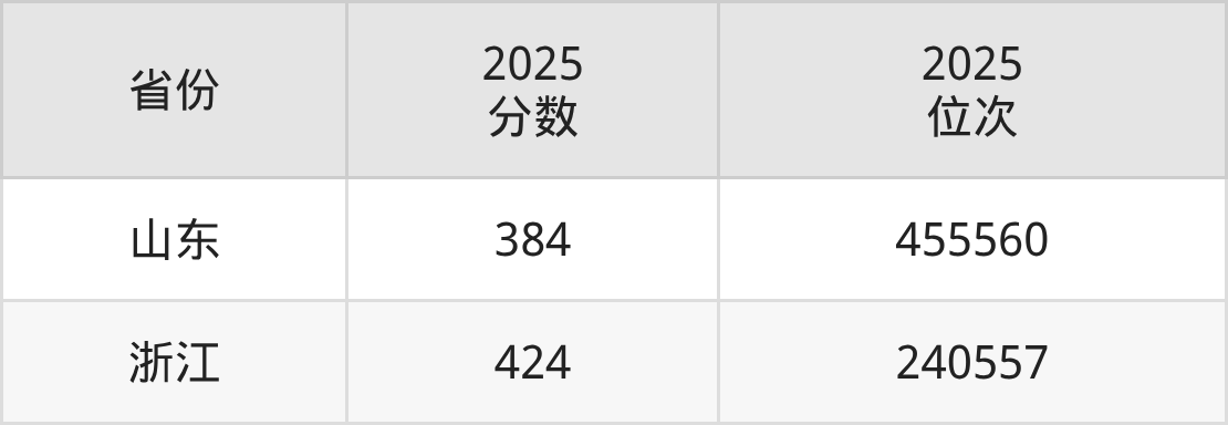 最低分对应地区为山东,录取位次为455560,超二段线234分;最高分对应地区为浙江,录取位次为240557,超二段线156分。