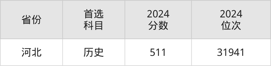 历史类最低分对应地区为河北,录取位次为31941,超本科线62分。