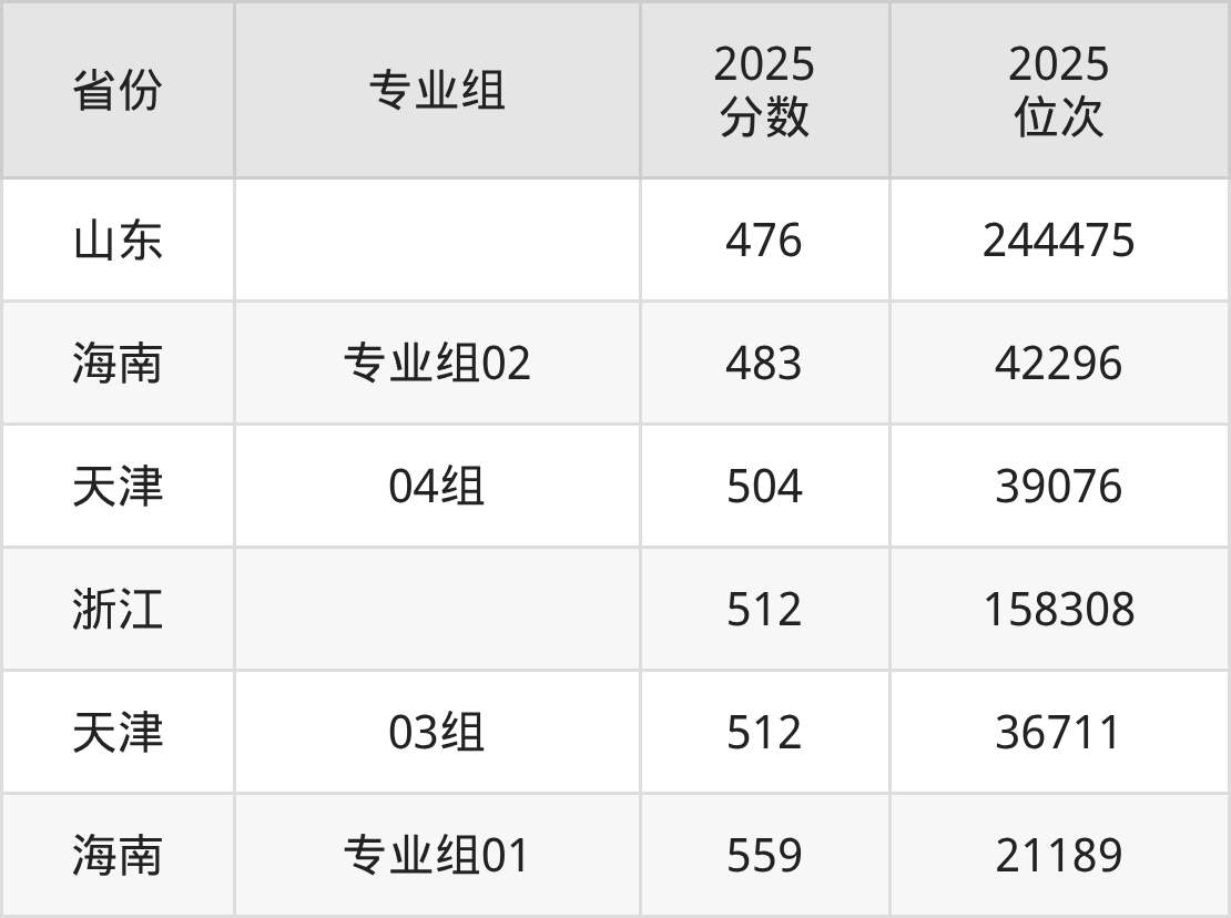 最低分对应地区为山东,录取位次为244475,超一段线35分;最高分对应地区为海南(专业组01),录取位次为21189,超本科线79分。
