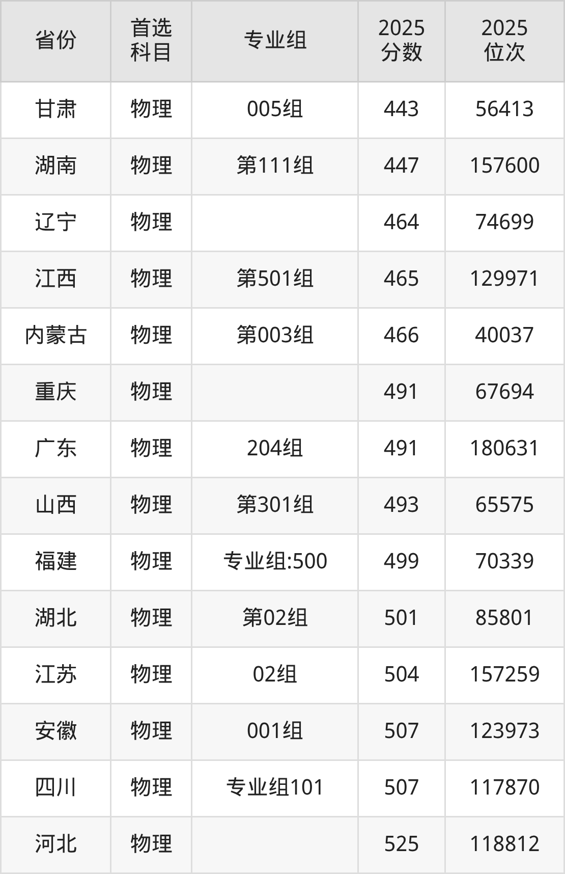 物理类最低分对应地区为黑龙江(第002组),录取位次为84950,超本科线1分;最高分对应地区为河北,录取位次为118812,超本科线66分。