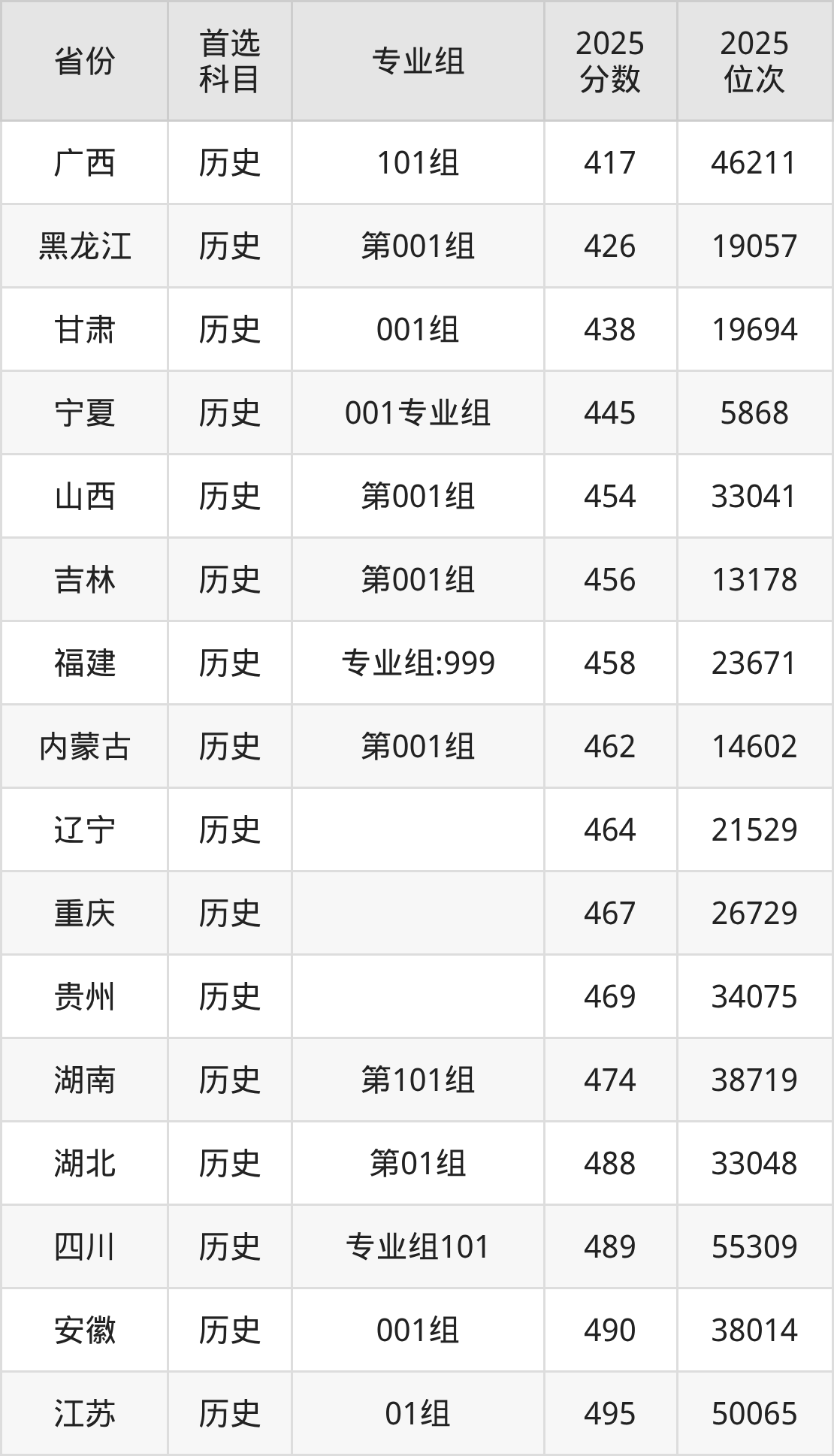 历史类:第001组454分、33041名;