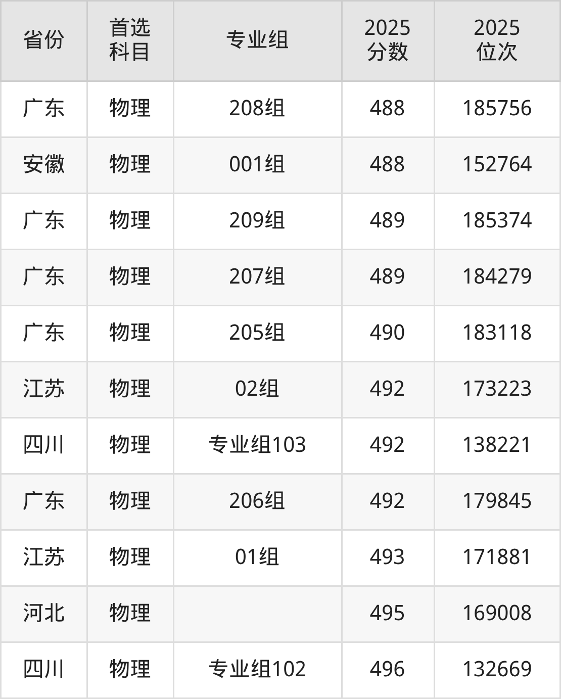物理类最低分对应地区为重庆,录取位次为139478;最高分对应地区为四川(专业组102),录取位次为132669,超本科B58分。