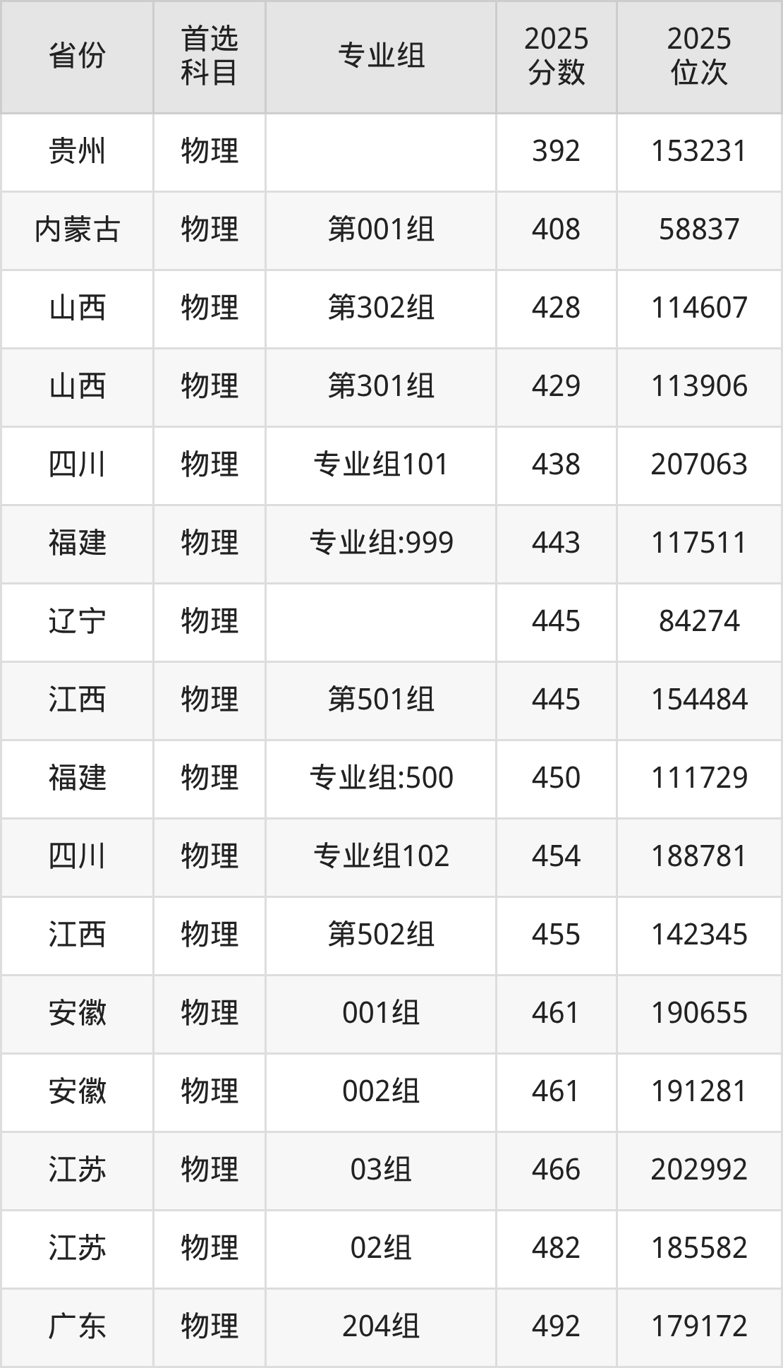 物理类:500组450分、111729名,999组443分、117511名;