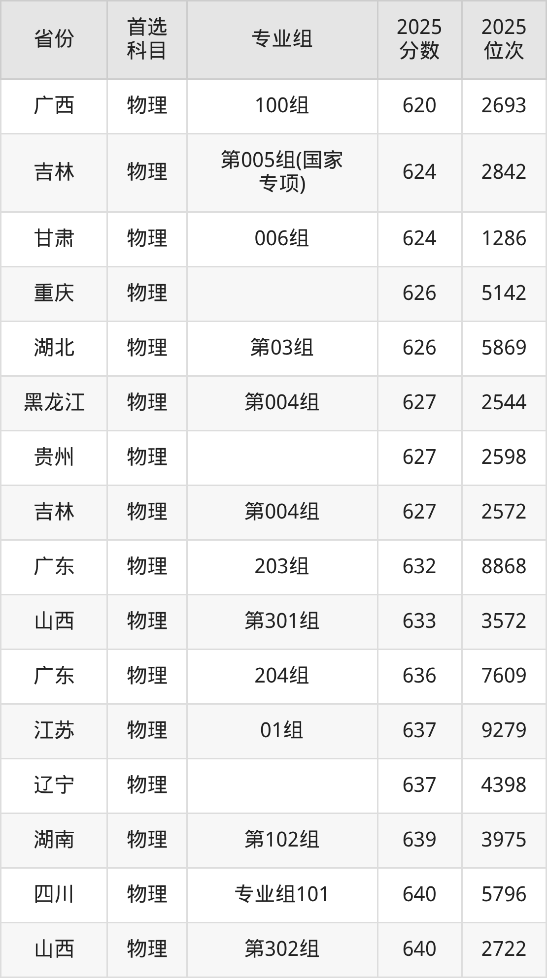 01组645分、3189名,02组644分、3326名,04组646分、3047名;