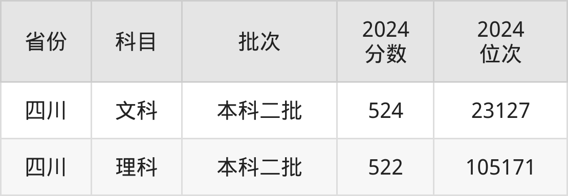 理科最低分对应地区为四川,录取位次为105171,超二本线63分。