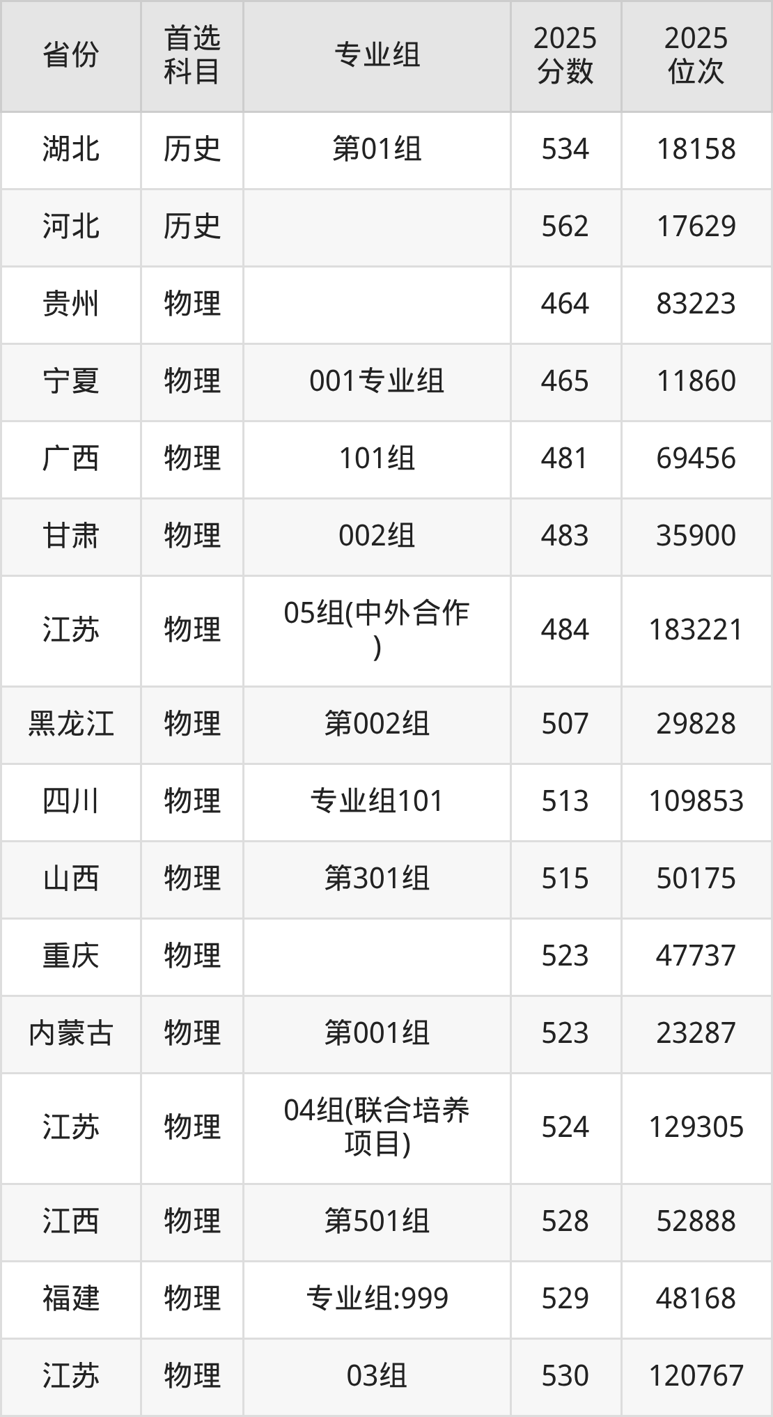 物理类:03组530分、120767名,04组(联合培养项目)524分、129305名,05组(中外合作)484分、183221名;
