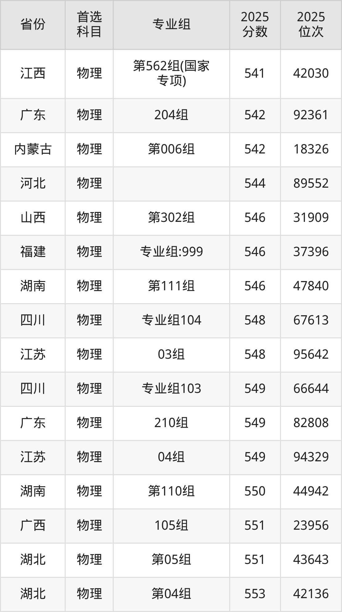 物理类:500组541分、33456名,506组543分、32480名,999组542分、32949名。