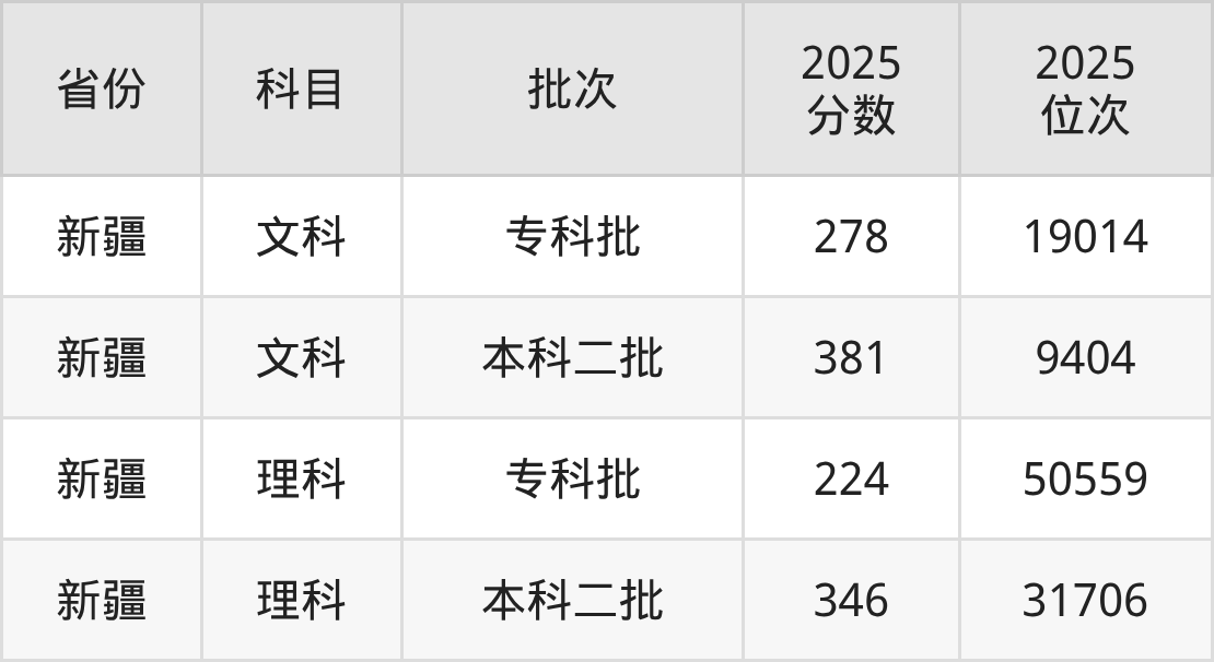 文科最低分对应地区为新疆,录取位次为19014,超专科线138分;最高分对应地区为新疆,录取位次为9404,超二本线51分。