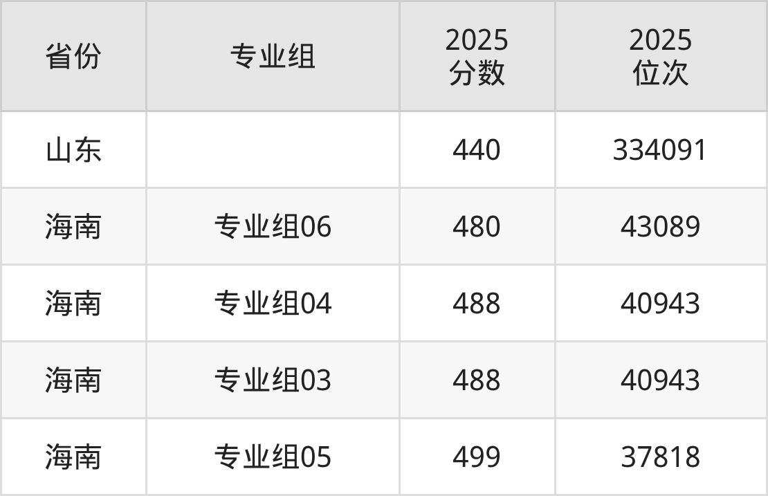 最低分对应地区为山东,录取位次为334091,超一段线38分;最高分对应地区为海南(专业组05),录取位次为37818,超本科线19分。