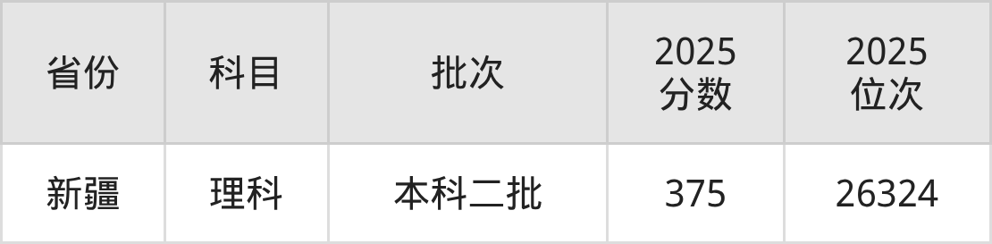 理科最低分对应地区为新疆,录取位次为26324,超二本线95分。