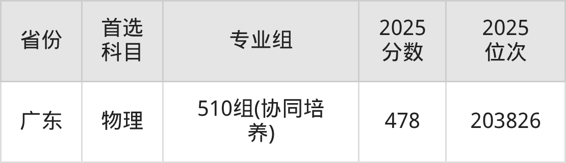 物理类最低分对应地区为山西(第301组),录取位次为43944;最高分对应地区为广东(510组(协同培养)),录取位次为203826,超专科线278分。