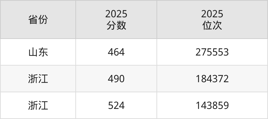 最低分对应地区为山东,录取位次为275553,超一段线59分;最高分对应地区为浙江,录取位次为143859,超二段线256分。