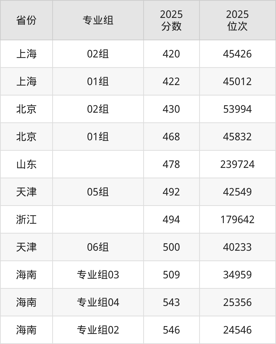 最低分对应地区为上海(02组),录取位次为45426,超本科线18分;最高分对应地区为海南(专业组02),录取位次为24546,超本科线66分。