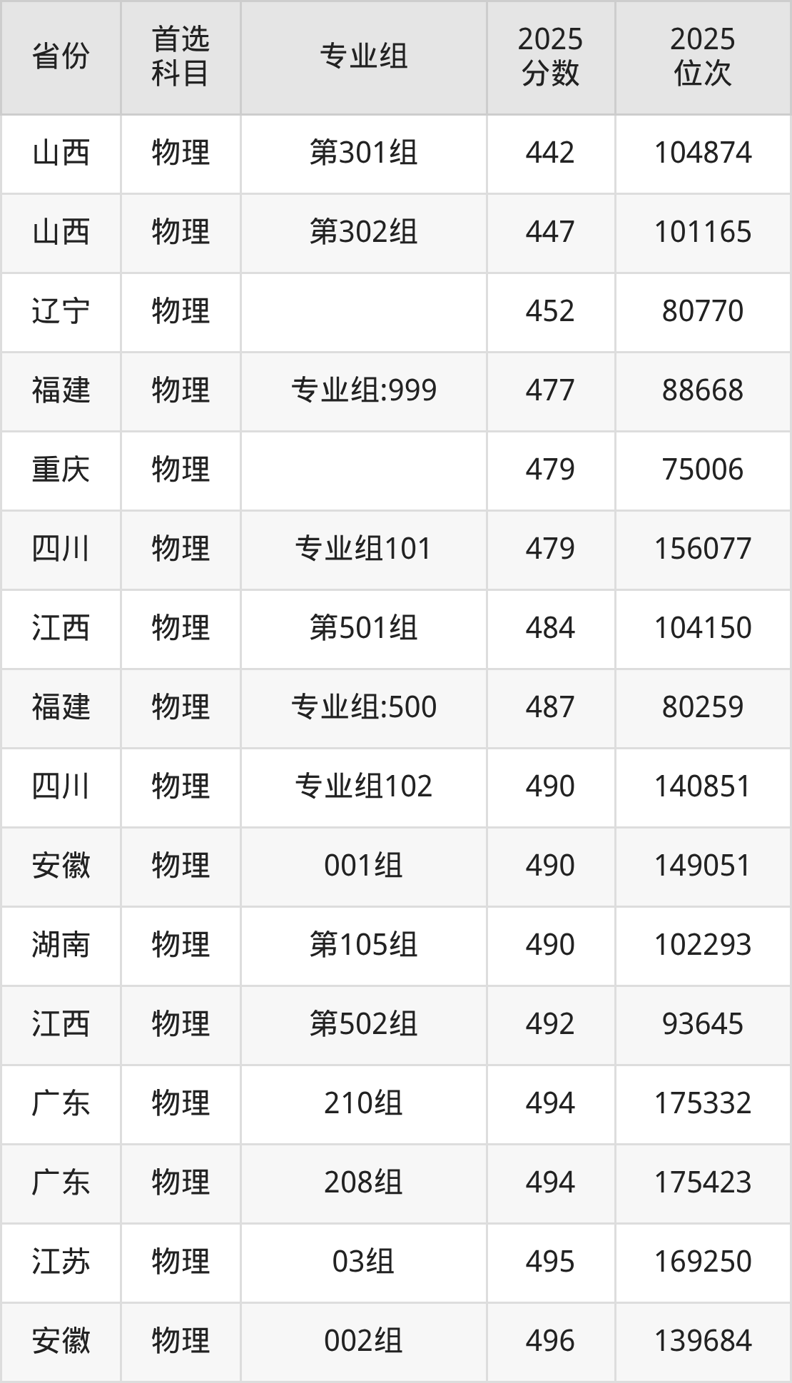 物理类:208组490分、157524名,209组490分、157524名,210组490分、157524名,211组490分、157524名。