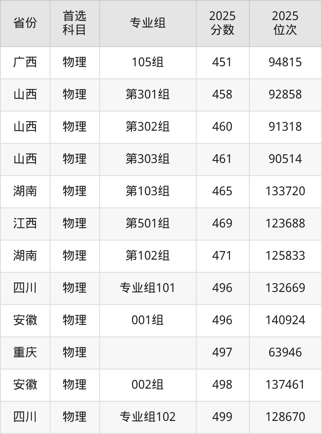 物理类:409分、129765名;