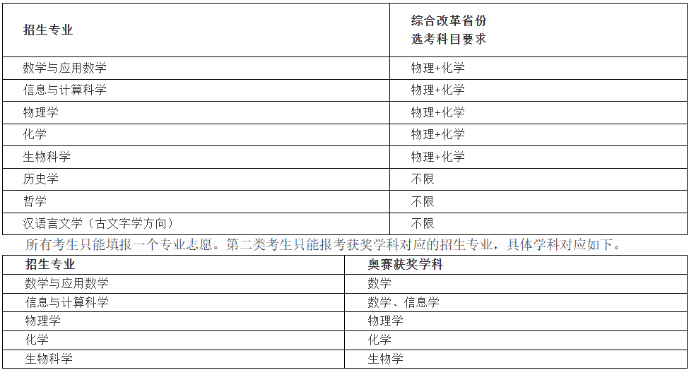 学校强基计划招生专业为数学与应用数学、信息与计算科学、物理学、化学、生物科学、历史学、哲学、汉语言文学(古文字学方向)。