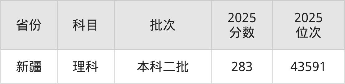 理科最低分对应地区为新疆,录取位次为43591,超二本线3分。