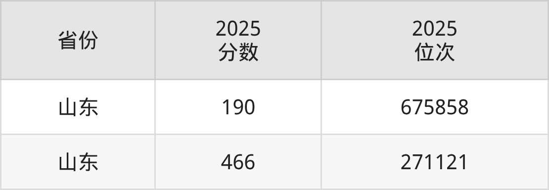 最低分对应地区为山东,录取位次为675858;最高分对应地区为山东,录取位次为271121,超一段线25分。