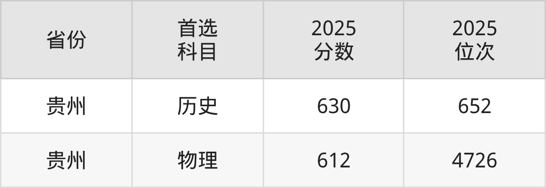 历史类最低分对应地区为贵州,录取位次为652,超本科线172分。
