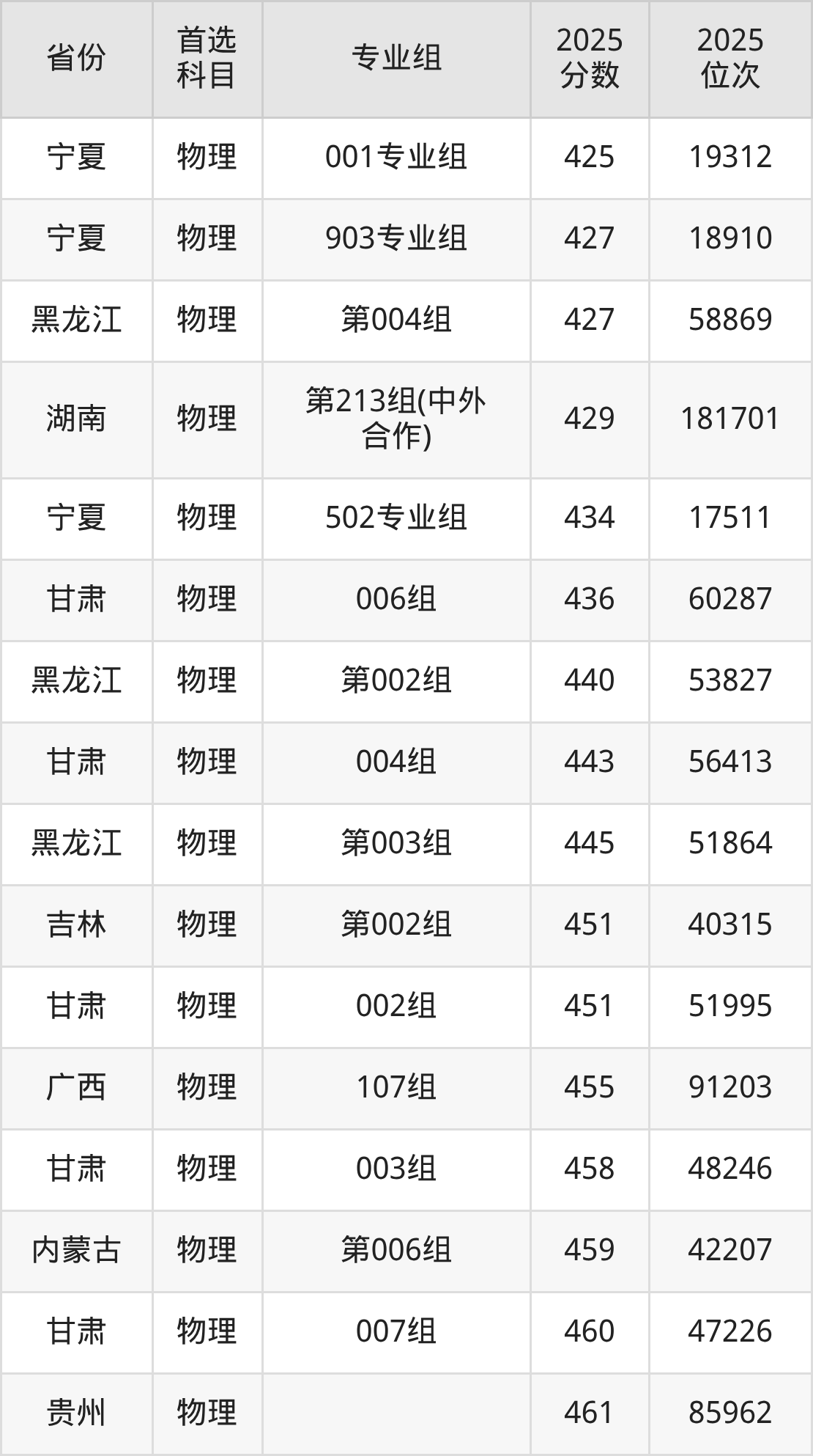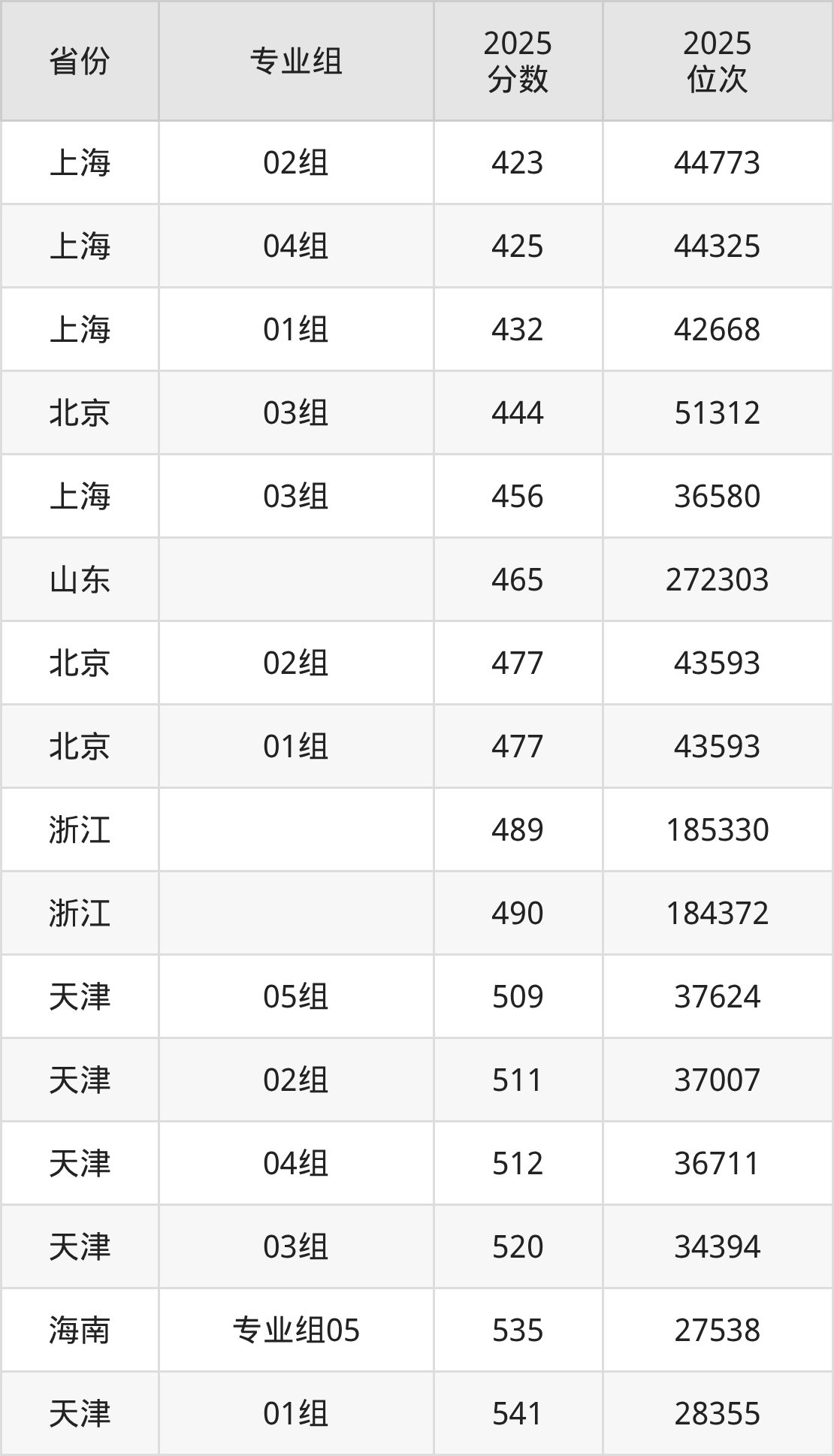 物理类:122组(地方免费师范生)543分、80111名,123组(地方免费师范生)535分、91369名,124组(地方免费师范生)543分、80332名,125组(地方免费师范生)550分、70051名,126组(地方免费师范生)547分、74149名,127组(地方免费师范生)552分、68370名,128组(地方免费师范生)557分、61541名,129组(地方免费师范生)551分、69246名,130组(地方免费师范生)545分、76362名,131组(地方免费师范生)544分、78225名,132组(地方免费师范生)538分、86727名,133组(地方免费师范生)539分、84709名,134组(地方免费师范生)545分、76926名,135组(地方免费师范生)543分、80252名,136组(地方免费师范生)550分、70602名,137组(地方免费师范生)551分、69794名,138组(地方免费师范生)582分、35193名,139组(地方免费师范生)581分、36788名,140组(地方免费师范生)567分、50686名,141组(地方免费师范生)528分、101742名,142组(地方免费师范生)530分、98607名,143组(地方免费师范生)537分、87438名,144组(地方免费师范生)549分、71730名,145组(地方免费师范生)546分、75925名,146组(地方免费师范生)541分、82043名,147组(地方免费师范生)539分、85132名,148组(地方免费师范生)537分、87954名,149组(地方免费师范生)535分、91093名,150组(地方免费师范生)540分、83169名,151组(地方免费师范生)552分、68469名,152组(地方免费师范生)553分、67147名,153组(地方免费师范生)550分、71026名,154组(地方免费师范生)549分、71722名,155组(地方免费师范生)541分、82375名,207组530分、98530名,208组520分、114345名,209组490分、165082名,210组498分、151745名,211组502分、143485名,212组502分、145049名,213组499分、149376名,214组506分、137572名,215组504分、141368名,216组503分、141861名,217组502分、144374名,218组509分、132244名,219组503分、142625名,220组501分、146322名,221组504分、140570名,222组517分、119399名,223组515分、121887名,224组514分、124010名,225组506分、137654名,226组519分、115305名,227组519分、116398名,228组511分、128420名,229组519分、115320名,230组(协同培养)501分、146761名,231组(协同培养)503分、141962名,232组(中外合作)478分、186761名;