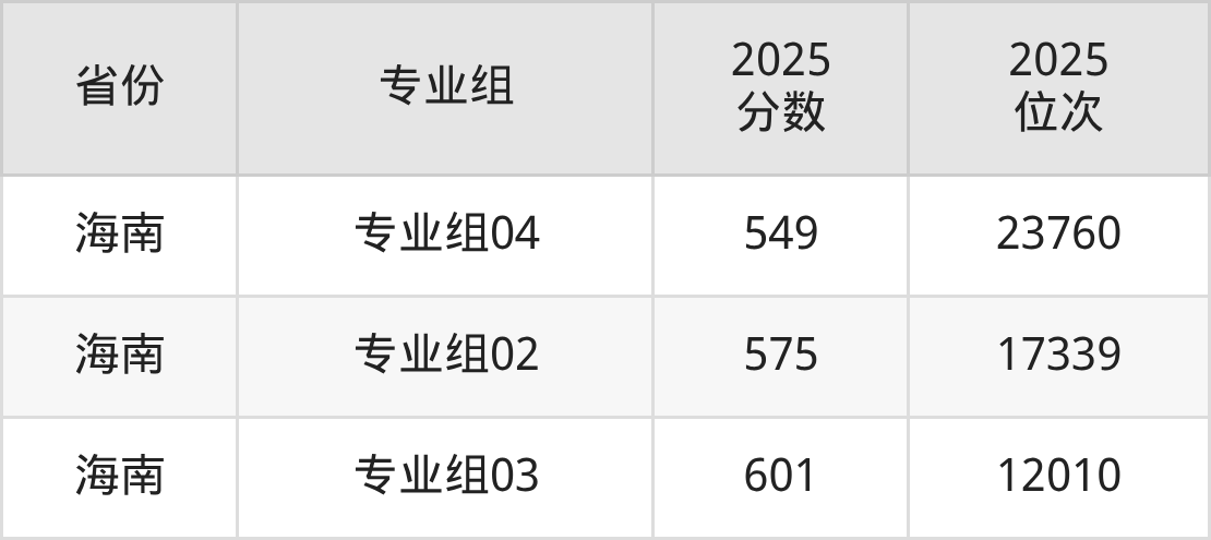 最低分对应地区为上海(02组),录取位次为44773,超本科线21分;最高分对应地区为海南(专业组03),录取位次为12010,超本科线121分。