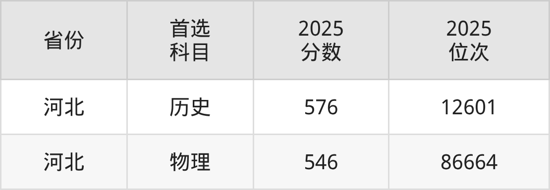 历史类:576分、12601名;