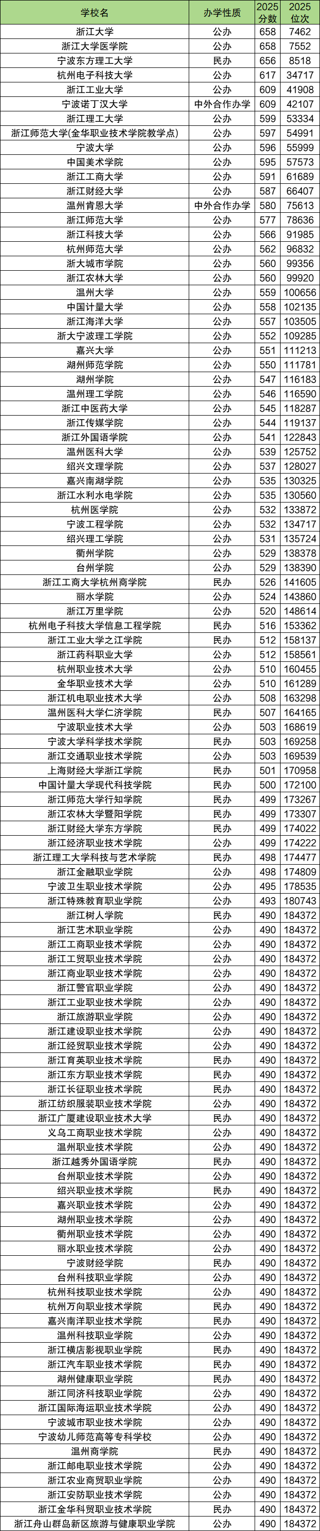 2025年浙江一段各大学中,分数线最高、最难考的院校是浙江大学,最低录取分数658分,录取位次7462位;