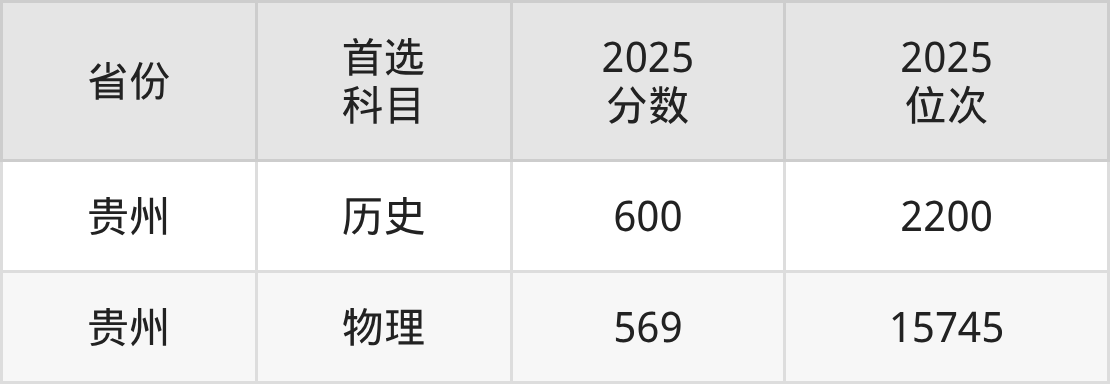 历史类最低分对应地区为贵州,录取位次为2200,超本科线142分。