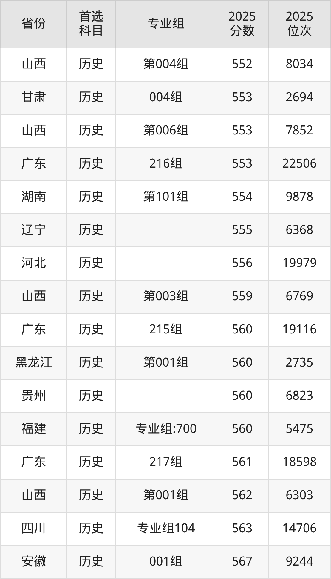 历史类:第101组554分、9878名,第102组543分、12598名,第103组547分、11547名,第104组552分、10343名,第109组550分、10822名;