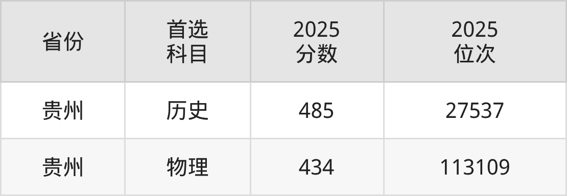 历史类最低分对应地区为贵州,录取位次为27537,超本科线27分。