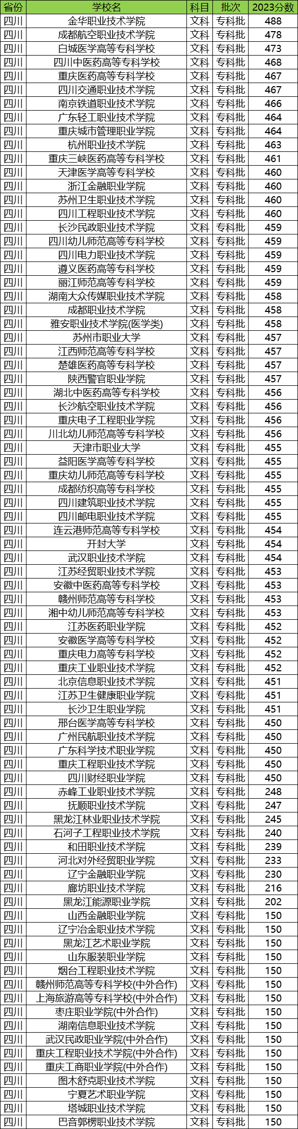 2023年四川文科专科线为150分,也就是说四川文科考生需要超过这个分数才有机会上公办专科大学。