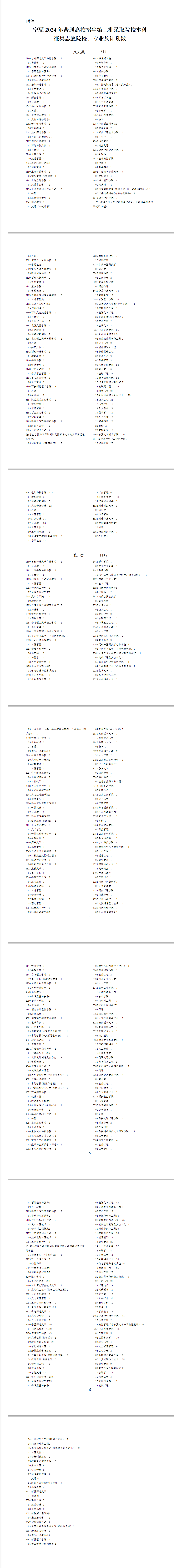 宁夏第一批本科征集志愿学校名单及招生计划如下图