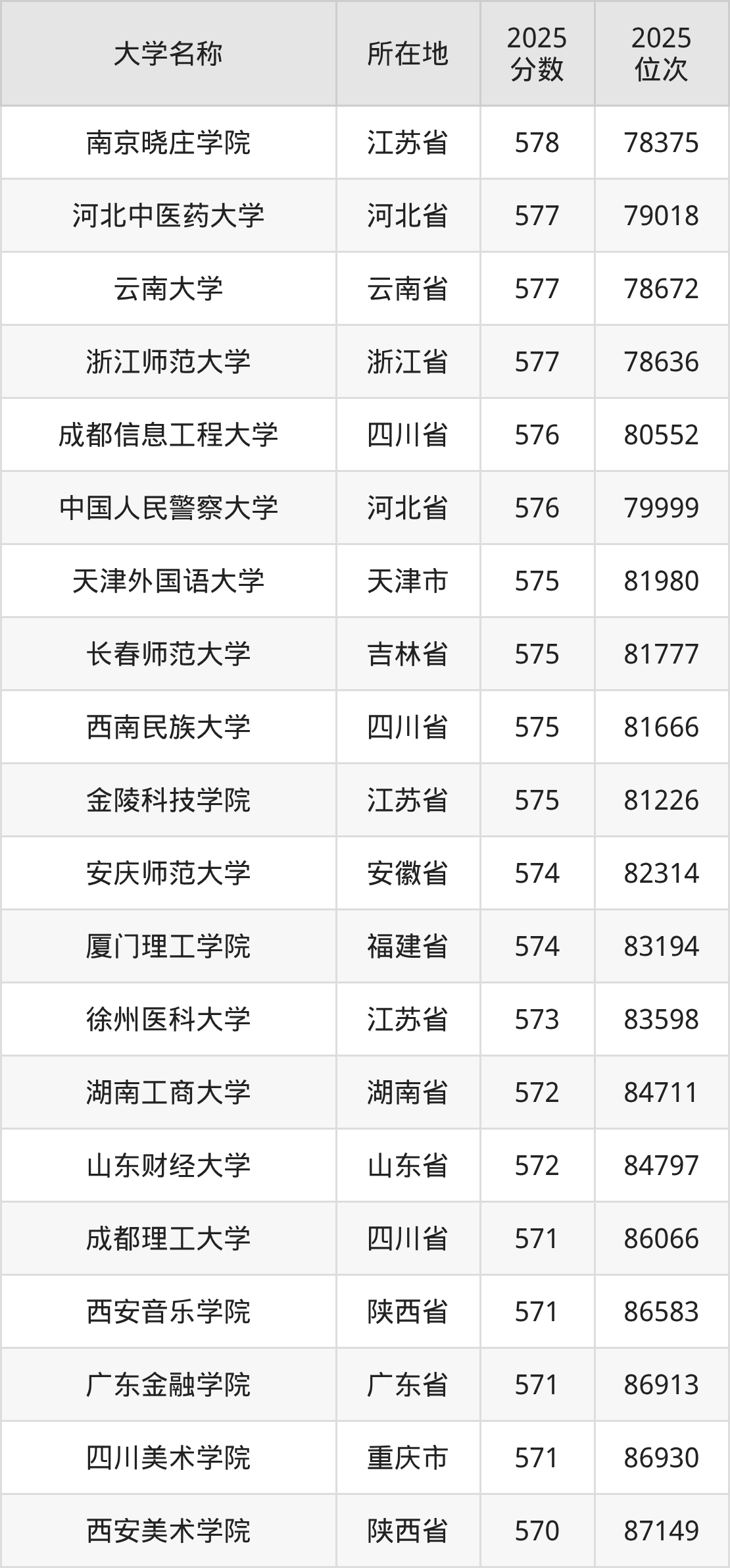 小编依据圆梦志愿平台提供的全国高校在浙江省招生录取数据,精心筛选并整理了针对2026年浙江考生的一份重要参考:列出了2025年录取位次接近浙江省第82000名的大学清单。