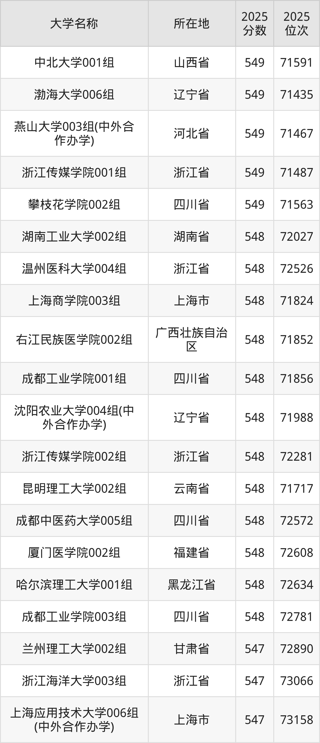 小编依据圆梦志愿平台提供的全国高校在安徽省招生录取数据,精心筛选并整理了针对2026年安徽考生的一份重要参考:列出了2025年录取位次接近安徽省第72000名的大学清单。