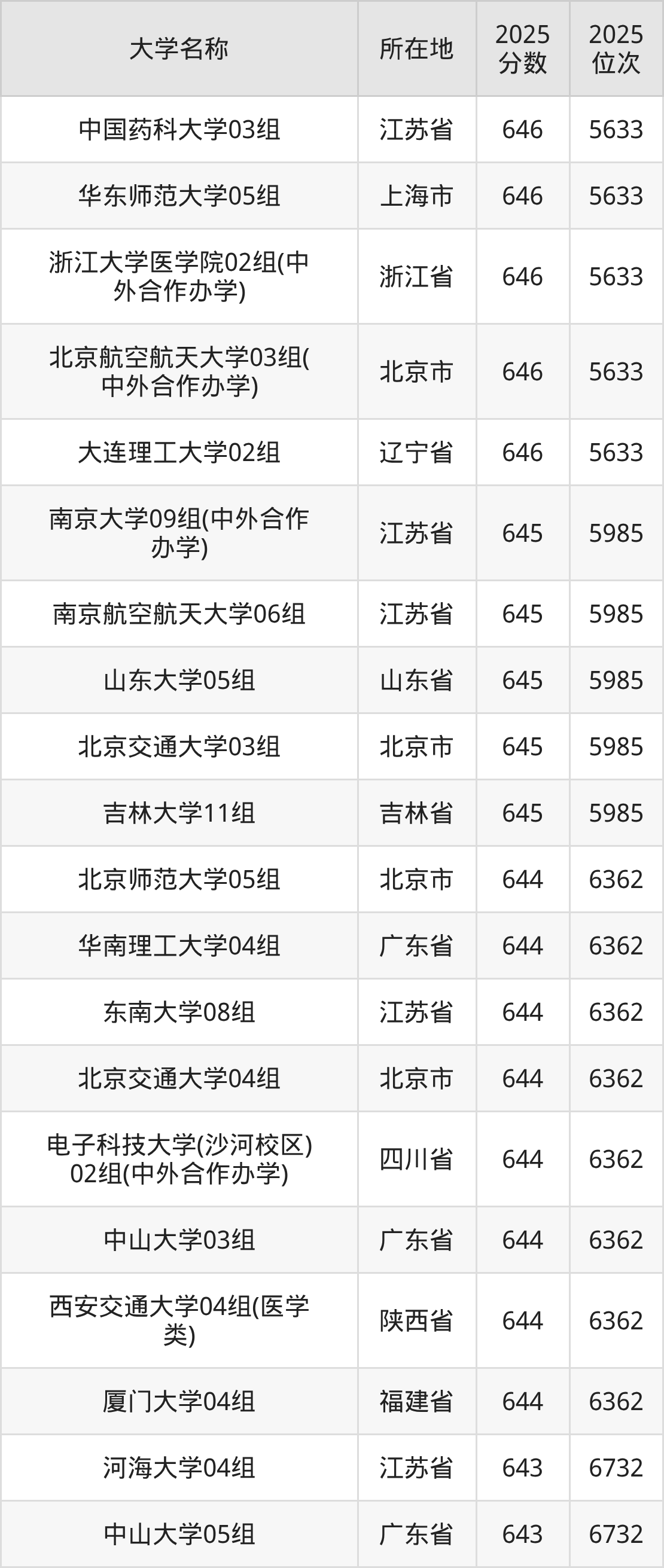 2025年江苏高考物理类5500名至6500名对应的高考分数是644分至646分,请2026年江苏考生参考!