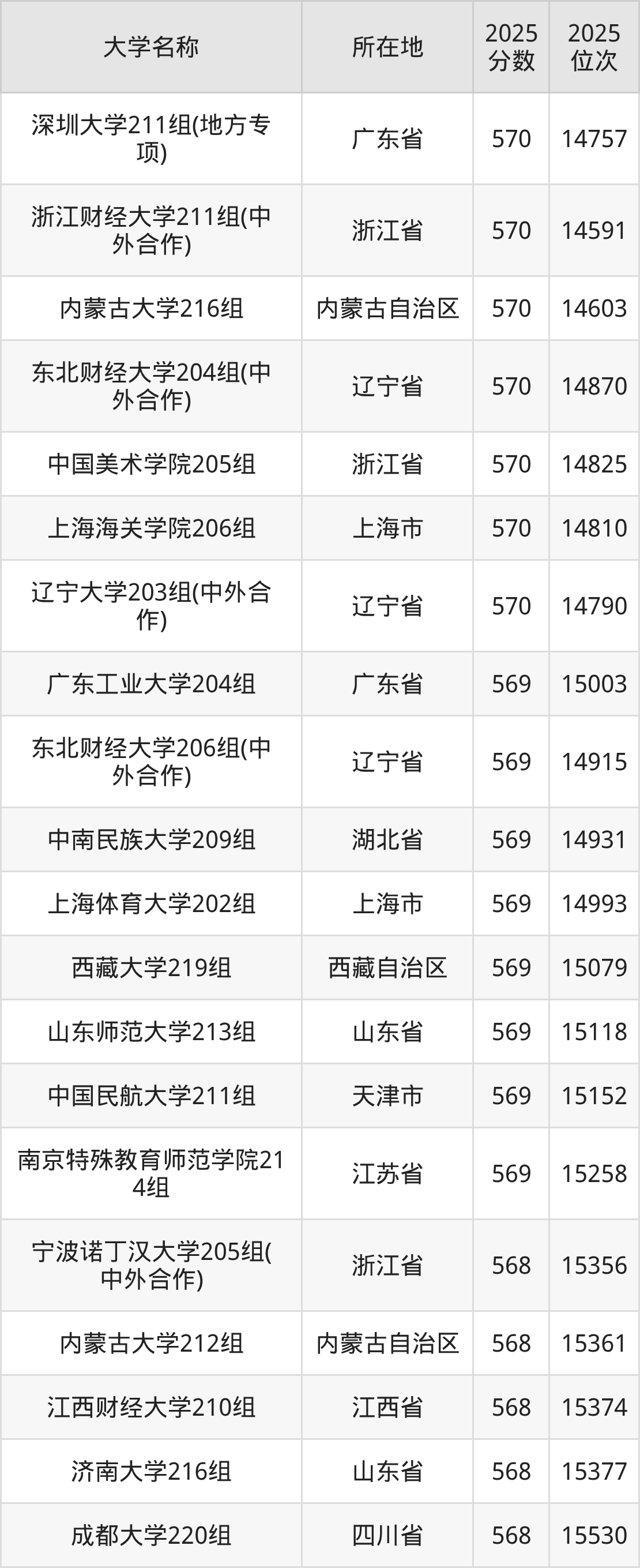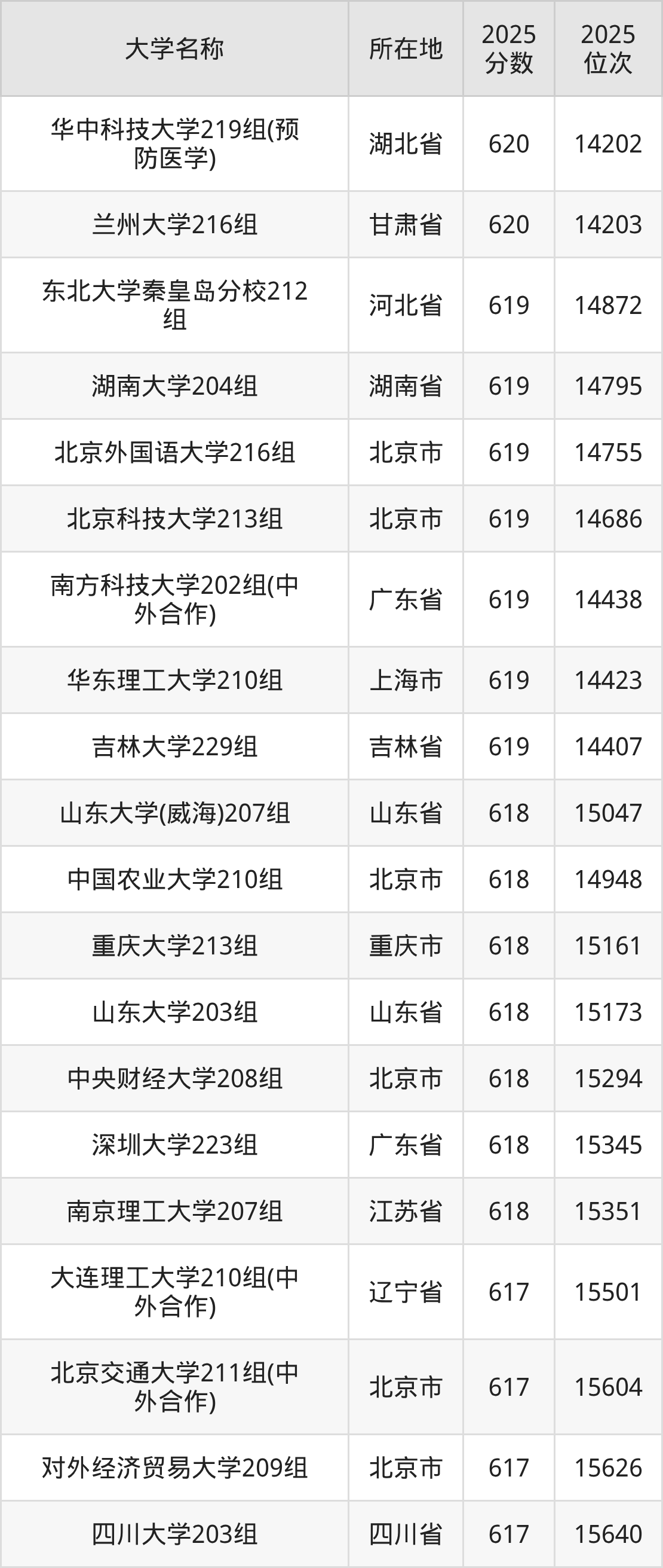 小编依据圆梦志愿平台提供的全国高校在广东省招生录取数据,精心筛选并整理了针对2026年广东考生的一份重要参考:列出了2025年录取位次接近广东省第15000名的大学清单。